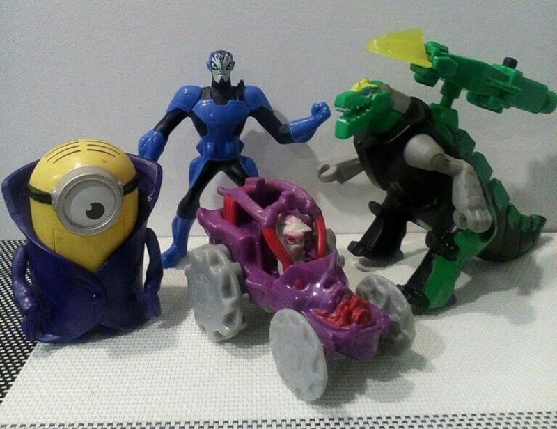 набір з чотирьох іграшок, мінйон, дракон стріляє, машина монстрик, робот