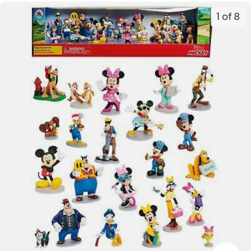 Новий набір колекційних фігурок героїв мультфільму Дісней про Міккі Мауса та його друзів. 22 фігурки в комплекті. На задній панелі нюанс - пошкоджений картон. В ціну враховано. Відправки Новою поштою