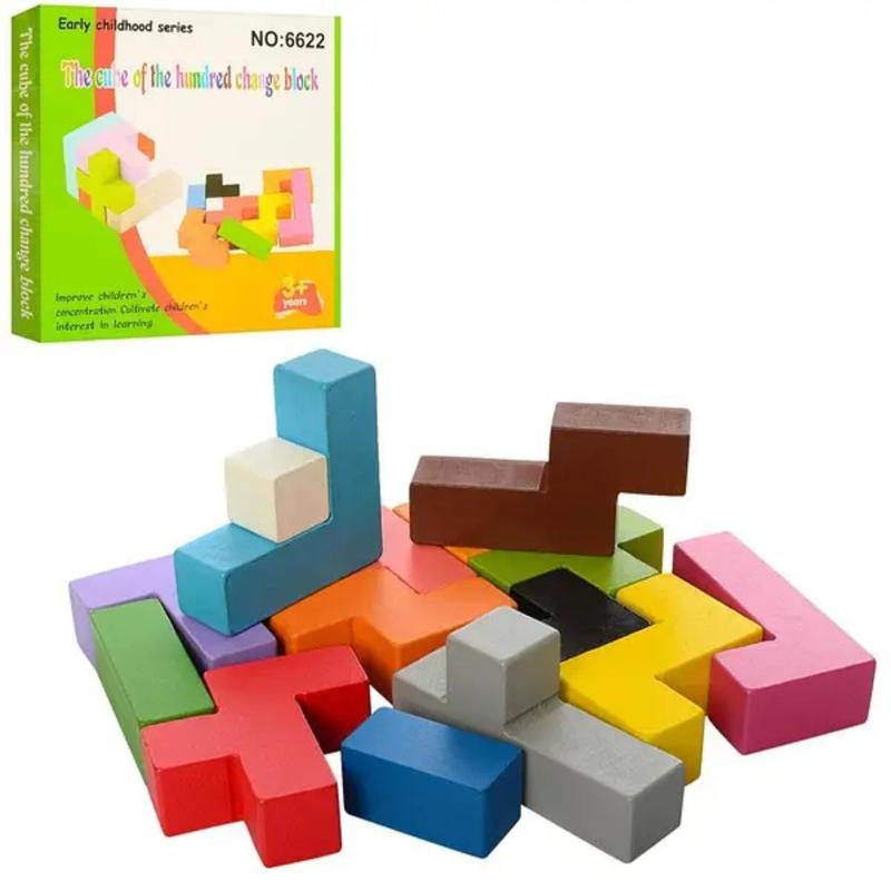Деревянная детская 3D головоломка Детская развивающая деревянная игра - головоломка состоит из 15 различных деревянных блоков разных форм, цветов и размеров. Пышут для детей 3+, но многим из 2 лет уже очень интересно! Моторика, логика, изучение цвета и форм. Размер коробки 24×23×5 см. Впитываемое, в очень хорошем состоянии, коробка-упаковка немного повреждена.