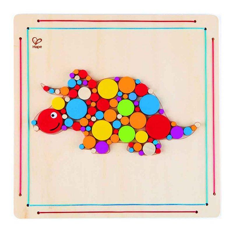 Деревянная игрушка-головоломка "Triceratops Mosaic" от Hape выполнена в виде рамки с узором рисунка. На первый взгляд сложное ремесло, но на деле все просто. Ребенку нужно выполнить три простых шага, чтобы создать уникальное произведение искусства. Разложите цветные, деревянные, круглые плитки; отделите защитную бумагу от рамки и положите плитки на липкую поверхность! Идеально подходит для начинающих художников, благодаря узорной основе, идеально подходящую для руководства маленькими ручками, чтобы разместить круглые плитки в нужном месте для красивой мозаики.