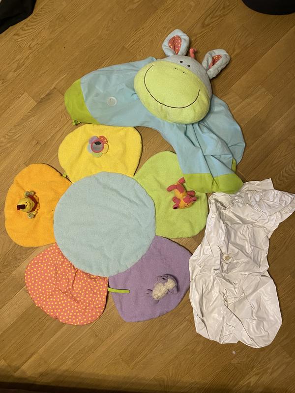 Классная вещь, которая очень поможет Вам с малышом. В нем очень удобно фиксировать ребенка, кормить, играть. Хорошее состояние, все маленькие игрушки в комплекте. - подходит с рождения при использовании игрового коврика. - надувное гнездо со съемными легко стирающимися чехлами. - по мере роста вашего ребенка трансформируется в 3 режима игры: гнездо, опора и игровой коврик. - отлично подходит для игр на животике, помогает развивать координацию и силу. - ткани и текстуры, стимулирующие прикосновения и стимулирующие сенсорную игру (в ушках элементы шуршания) - контрастные цвета для зрительной стимуляции. 3 этапа для вашего малыша: Этап 1: гнездо новорожденного. уютное, приятное, поддерживающее гнездышко для новорожденных Этап 2: подушка-подушка - трансформируется в опору, чтобы дать детям старшего возраста необходимую поддержку, когда они начинают сидеть. Этап 3: игровой коврик - мягкое место для игр ребенка, которое также отлично подходит для игр на животике, множество текстур для маленьких ручек, контрастные цвета для визуальной стимуляции, отличный друг- оселочек.