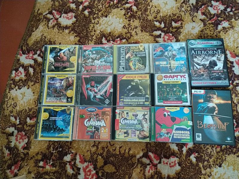 cd-dwd диски с играми 1. star wars джедай 2 продано 2. star wars empire at war 3. хроники ганмен продана 4. глобальная я операция 5. bionicle 6. полка Европы 7. sims 2 8. sims 2 бизнес 9. операция трондхейм 10. soldier of fortune продано 11. клиффорд учитися читать по английски 12. Beowulf 13. medal of honor airborne 14. 5в1: crusaders of might and magic, tiberian sun firestorm, homeworld, quake 3 arena, civilization 2 test of time