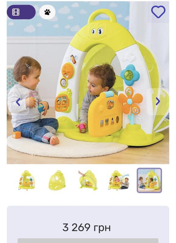 Smoby-дорогий бренд якісних іграшок,дитячих товарів для розвитку,ігр вдома і на вулиці! Цей будиночок-ідеальне ,улюблене місце для ігр,хованок малюків до 4 років)вдома і на вулиці,адже накривна частина захищає від дощу і сонця. Всі інтерактивні елементи спереду і внутри будиночка рухливі (очі,вітряк-квітка,колесико,вертушки,віконце),якщо поміняти батарейку-то ще буде дзвоник працювати. Все в чудовому стані,єдине що є декілька тріщинок,на останньому фото(наступив дорослий),для користування діточок ніяк не впливає,не просідає. В ціну врахували,адже новий коштував 3400грн. Самовивіз Троєщина Київ,НП,УП