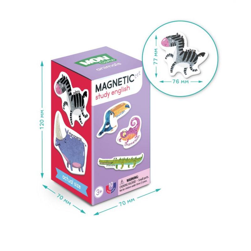 Изучаем английский с самыми милыми магнитами. Посмотрите только на эти яркие и веселые магниты. На каждом магнитике изображается яркое животное и его название на английском. Все, чтобы малыши быстрым и интересным способом изучали английский. Магнитные игры MON game - новый формат развивающих игр от любимого бренда. Все что для них нужно - металлическая поверхность и сами магниты, которые так хорошо крепятся к ней.