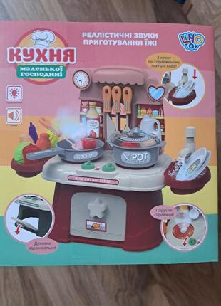 Кухня детская, , плита, пар, звук,свет, мойка-льется вода(механич), кастрюля, сковородка, кухон.набор, продукты, на батарейках В собранном виде 38×24×17 Размер упаковки 26×20×19