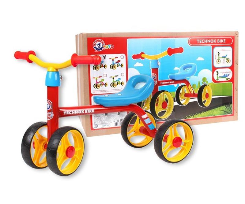 Коли ваш малюк уже навчився не тільки ходити, але також бігати і стрибати, йому просто необхідний засіб пересування, який підтримуватиме його ритм. Дитячий байк Технок або безпедальний велосипед в ігровій формі розвиватиме в малюка почуття балансу та тренуватиме багато груп. Особливості моделі: для дітей: старше 2-х років, рама: сталева, кермо: сталеве. Кількість коліс: 4. Сідло: пластикове, передбачена широка ручка для зручного перенесення. Положення сідла для зручності дитини, можна змінювати. Максимальне навантаження: 20 кг. Іграшка запакована в картонну коробку, і стане незабутнім подарунком для юного байкера!