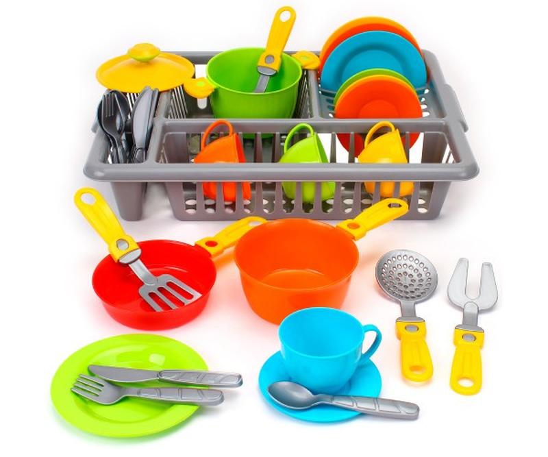 Посуд для дитячої кухні - 33 шт. Набір кухонного посуду для ігор з сірою сушаркою. Нарешті маленьким шефам вистачить кухонних аксесуарів та іграшкового посуду для святкової родинної вечері. Ніжні кольори, велика та цікава комплектація неодмінно привернуть увагу малечі до іграшки. Посуд та кухонне приладдя – це перші предмети побуту, з якими знайомиться малюк, адже зустрічає їх щодня. Саме тому іграшкові кухні такі цікаві для всіх діточок. ГРАТИСЬ ТА НАВЧАТИСЬ. Наші ігрові набори для дитячої кухні забезпечать ваших дітей цікавим заняттям надовго на самоті або з друзями. Такі ігри стимулюють спілкування та сприяють розвитку фантазії, творчого мислення, розвивають дрібну моторику. Вони допомагають сформувати навички приготування їжі та прибирання, вивчити правила поведінки з технікою на кухні. ПРИЄМНІ КОЛЬОРИ та КРАСИВИЙ ДИЗАЙН. І хлопчикам, і дівчаткам сподобається гратися з привабливим барвистим іграшковим посудом. Каструлі, сковорідки та інший посуд мають елегантний вигляд. Їх легко тримати в руках і грати з ними. БЕЗПЕКА. Всі іграшки виготовлені з якісного пластику без запаху, не містить фталатів і BPA, а це означає, що ваша дитина може безтурботно торкатися та облизувати іграшки. Їх також легко чистити та зберігати. ЧУДОВИЙ ПОДАРУНОК. Кухонний ігровий набір ТЕХНОК запакований у яскраву кольорову коробку. Це ідеальний подарунок на дні народження, Різдво, тематичні вечірки тощо.