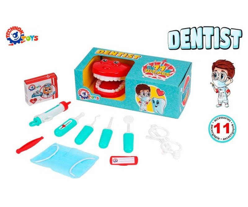 Іграшка «Набір стоматолога ТехноК» познайомить малюків з новою професією — лікаря стоматолога. Так дітки змалку будуть вчитися правильно доглядати за ротовою порожниною. А в ігровій формі робити це значно цікавіше, адже саме через гру дітям легше навчатися та проявляти себе.У наборі є всі необхідні інструменти, щоб провести огляд та пролікувати зубки улюбленим іграшкам: бур, дзеркало, зонд, шприц, термометр та пінцет. Модель щелепи допоможе краще роздивитися зубки. Одягнувши окуляри та бейджик, малюк відчує себе справжнім стоматологом. А дотримуватися всіх правил гігієни у "стоматологічному кабінеті" допоможе спеціальна захисна маска.Сюжетно-рольові ігри відіграють важливу роль у розвитку дітей, сприяють формуванню соціальних та комунікативних навичок, розвивають фантазію та уяву. Іграшка «Набір стоматолога ТехноК» допоможе малюкам краще познайомитися з професією лікаря, і, що надзвичайно важливо, подолати страх перед відвідуванням стоматологічного кабінету. Ми рекомендуємо погратися цією іграшкою з малюком напередодні візиту до лікаря і розповісти багато цікавого про його зубки. Також наш новий набір зможе стати подарунком після відвідин лікаря за чемну і терпеливу поведінку в кабінеті.Іграшка виготовлена з міцного якісного пластику без запаху.Пакування – яскрава напіввідкрита коробка. Для дітей від 3-х років.