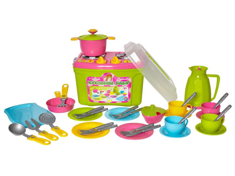Набор посуды ТехноК №9 - это та самая игрушка от которой ваш ребенок будет у восторге. Посуда - замечательная игрушка для будущих хозяек. С такой посудой детям интересно играть дома и на улице. Игрушечная посуда упакован в удобную яркую пластиковый чемоданчик с ручной и полупрозрачной крышкой. Одновременно чемодан является игрушечной газовой плитой с 2-мя конфорками и 2-мя ручками- регуляторами. В газовой поверхностью место для хранения 37-х элементов выполненных в оригинальной цветовой гамме модельной линейки кухонных наборов ТехноК. Вес - 745 г. Размеры: 25*21*18 см.