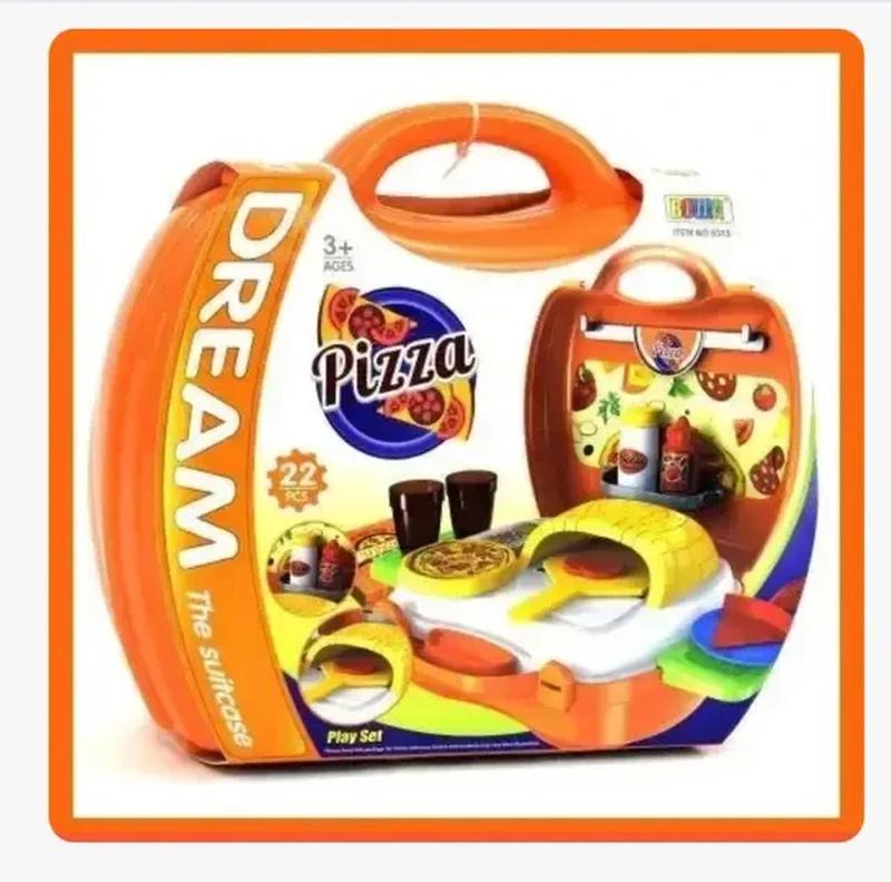 Детский игровой набор для приготовления пиццы для девочки и мальчика. В набор входит 22 предмета в чемоданчике. Переносная Пиццерия собирается один очень удобный чемоданчик на защелках. В раскрытом виде игра представляет собой небольшую рабочую зону с печью и зоной для хранения продуктов и инструментов. С таким набором ребенок почувствует себя настоящим пицейола! Это прекрасный набор для маленького кулинара.