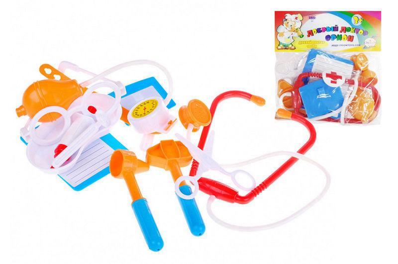 Лікарський набір в пакеті 914в.2 ORION Призначений для дітей дошкільного віку і дозволяє пізнати основи медицини. Придумати собі заняття або гру з таким набором нескладно, оскільки гри в санітарок і лікарів, у дітей завжди стоять на першому місці. Завдяки такому комплекту, дитина може надавати першу медичну допомогу своїх іграшок або одноліткам. Всі медичні предмети з набору виготовлені з якісних матеріалів з обробленими поверхнями. Колючих закінчень на них немає, тому заподіяти шкоду іграшками неможливо. Рекомендовано для гри дітей від 3 років.