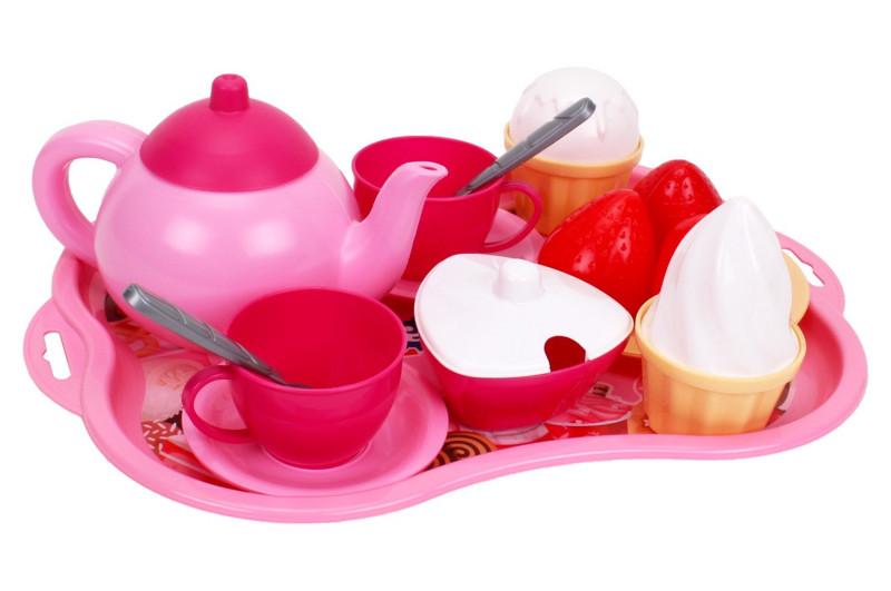 Игрушечная посуда очень популярна среди малышей. И это неудивительно, ведь она создан на основе знакомых ребенку вещей, которые встречаются каждый день. Приготовить вкусный борщ, заварить чай или испечь торт - это те сюжетно- ролевые игры в которые дети охотно играют с куклами и друзьями. Игрушка "Набор посуды ТехноК" - непременно привлечет внимание малышей яркими цветами и интересной комплектацией. Это набор для чаепития теплыми летними днями на террасе или заснеженными вечерами под пледом. Милый чайничек с округлыми линиями, сахарница, 2 чашки на блюдечках фрукты и кексы удобно разместились на подносе. Особого внимания заслуживает эксклюзивный дизайн подноса с яркими, сочными изображениями печенья, мороженого и конфет. Иллюстрацию нанесено по технологии IML (непосредственная инжекция на игрушку). Такой рисунок не теряет яркости и, в отличие от наклейки, является долговечным. Набор посуды станет прекрасным дополнение к игрушечной кухни и сделает игры Ваших детей интересными и разнообразными. Игрушка изготовлена из прочного качественного пластика без запаха и без острых краев. Для детей от 3-х лет. Упаковка - сетка с яркой картонной этикеткой. В наборе: поднос, сахарница с крышкой, чайник с крышкой, чашка на блюдце с ложками по 2 шт, тарелка, клубника 3 шт и формочки разной формы - 4 шт.