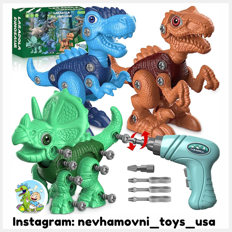 Этот детский набор для создания динозавров для начинающих включает в себя 3 динозавров: тираннозавра Рекса, трицератопса и велоцираптора. Помогите своим детям узнать больше о различных характеристиках динозавров и воспользуйтесь преимуществами ограниченного количества аксессуаров для создания неограниченного творчества. Наслаждайтесь досугом, учась и практикуя координацию рук и глаз. Дайте волю воображению вашего ребенка Некоторые части взаимозаменяемы. Дети могут построить гибрид. Это веселый вызов! Это еще веселее. Яркий симуляторный дизайн позволяет детям понимать и исследовать мир динозавров.