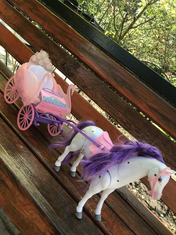 Продаю очень красивую игрушку электронная лошадка, которая перевозит карету, в самую карету можножно разместить куклу. Состояние красивое