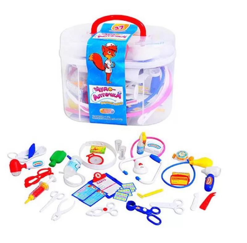 Игровой набор для любимой дочки или сыночка. Игра «Больничка»--это любимая игра многих деток от трех лет. Можно полечить друга, пришедшего в гости, любимого мишку или даже приболевшего папу. Набор идет в чемоданчике, что позволит с легкостью перенести все необходимые инструменты доктора к пациенту. А также позволит сохранить порядок в доме вне игры. В наборе 37 аксессуаров: молоточек, термометр, стетоскоп, пинцетик, пилюли, ножнички, шприц и др. Игра развивает необходимые социальные навыки. Размер чемоданчика: 22х17х12 см. Материал: пластик.