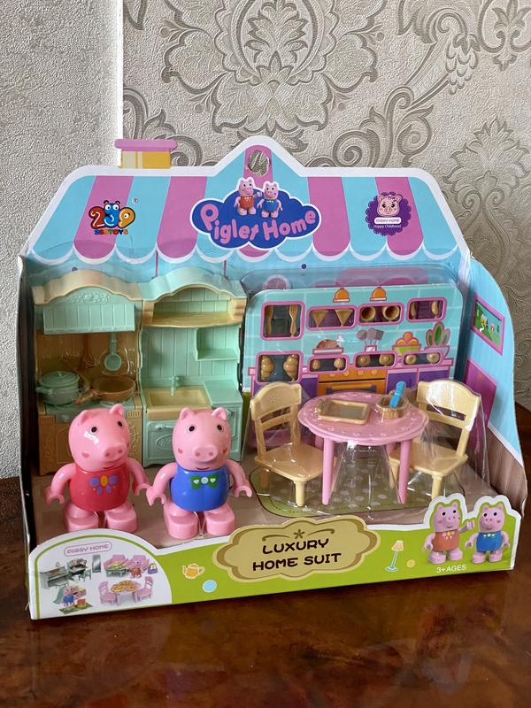 Пригоди милої та забавної свинки Пеппи, її друзів та сім'ї приковують до себе увагу дітей з усього світу. З ігровим набором меблів дитина зможе весело провести час на кухні зі своїми улюбленими персонажами мультфільму. У комплекті є все для відтворення повноцінної кухні. Яскравий дизайн, сучасний стиль, функціональність іграшкових меблів кухні сподобається малюкам і дозволить змоделювати безліч цікавих ігрових ситуацій. Діти зможуть обіграти життя мультиплікаційних героїв, розіграти улюблені сцени з мультсеріалу або вигадати нові пригоди. Подібні розваги відмінно розвивають дрібну моторику, фантазію, образне мислення, роблять дитину більш самостійною та кмітливою. У комплекті: плита, мийка, стіл, стільці , 2 фігурки свинок (7 см), додаткові аксесуари. Розмір упаковки: 26,5 * 22 * 12,5 см.