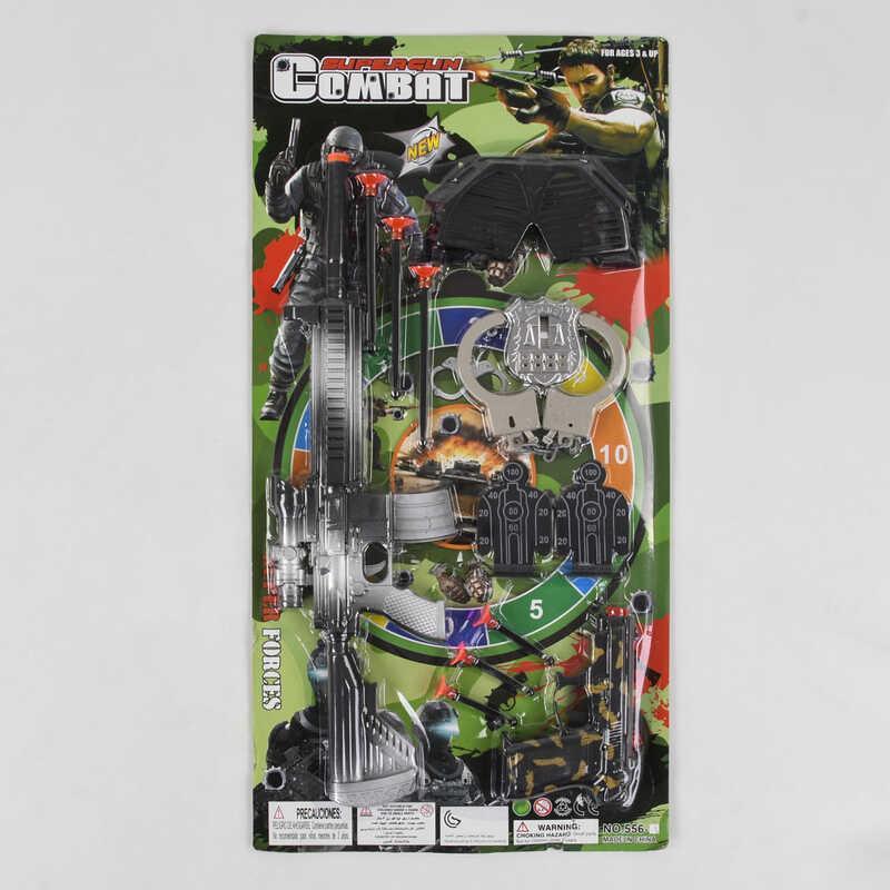 Военный набор игрушечный из 13 элементов, автомат, пистолет, 6 патронов на присоске, 556-8
