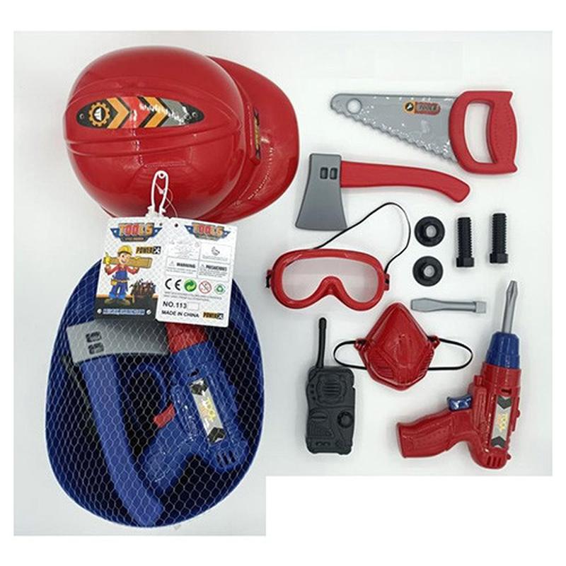 Набор инструментов игровой, шуруповерт, каска, пила, топор, маска, рация, 113-1