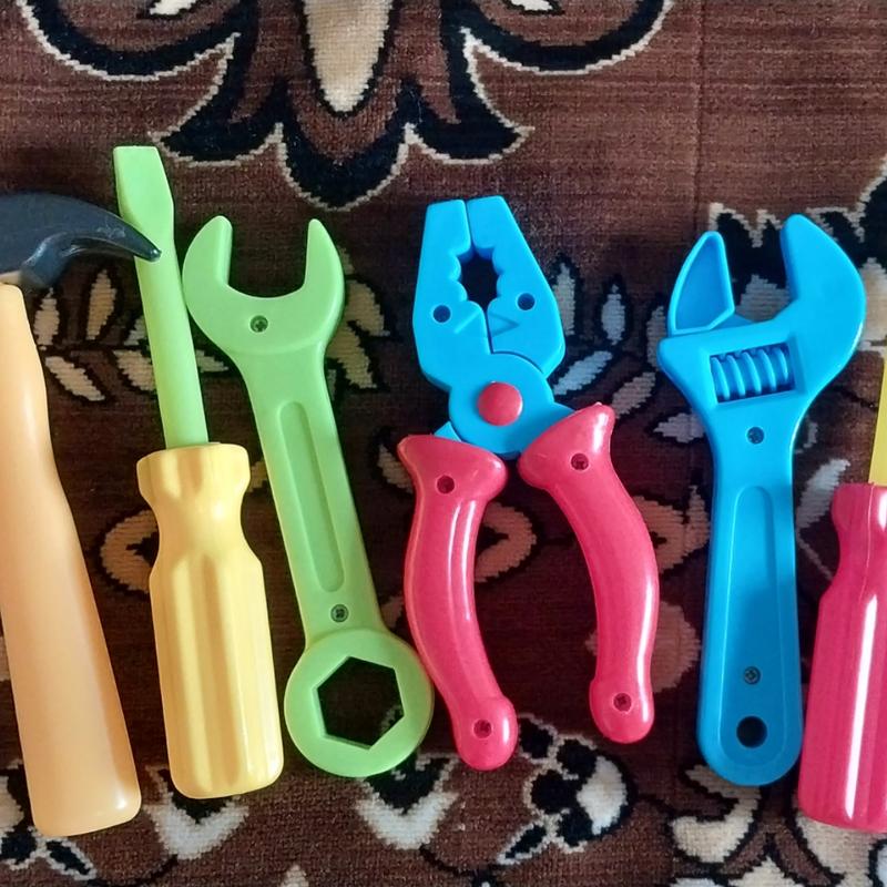 игрушечный набор инструментов. Все инструменты реалистические. игрушки новые были на витрине в магазине.