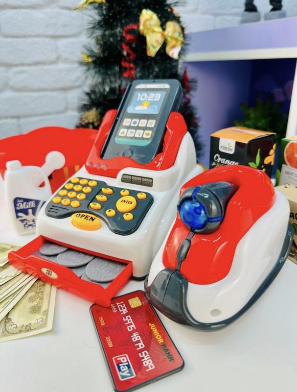 Эта замечательная игрушка создана для имитации работы касы в супермаркете или магазине158 отлично дополнит ролевые игры, в которых дети могут воспроизводить сценарии покупок и представлять себя в роли продавцов или покупателей Здесь собрано все необходимое, что понадобится для шоппинга: корзина с продуктами монеты и банкноты, самое главное, это то, что игроки смогут воспроизводить кассовые операции пользуясь игрушечными сканером и кассовым аппаратом со светло-звуковыми эффектами - 33 елементи - подсветка индикаторов - имитация сканирования покупок - тематические звуковые эффекты - наклейки для декорирования кассового аппарата - в комплекте также представлена корзина, средства и продукты Работает кассовый аппарат от батареек АА 2шт. Сканер работает ввод батареек АА 2шт. Имитация экрана работает от батареек ААА 2шт. Батарейки в набор не прилагаются