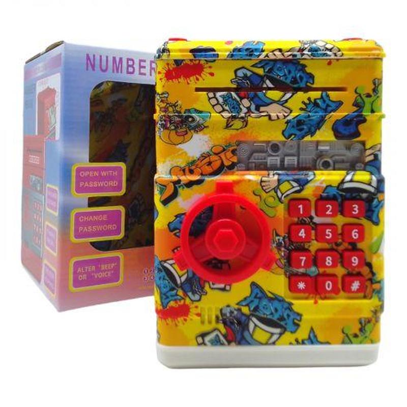 Цікава скарбничка у вигляді сейфа із кодовим замком. У скарбничці є отвори для купюр (затягує купюри). Кодовий замок розміщено на дверцятах. Набравши правильну комбінацію, можна відкрити сейф (стартова комбінація – 0000). Є світлові та звукові ефекти (мелодія під час відкриття/закриття дверцят). Виконаний у яскравому, незвичному дизайні. Для дітей віком від 3-х років. Бренд: MIC Упаковка: Коробка Колір: Різнобарв'я Тип ел-тів живлення: Батарейки АА Кількість ел-тів живлення: 3 Ел-ти живлення в комплекті: Ні Вага з упаковкою: 550 г Габарити в упаковці: 14.5 x 20 x 14 см Габарити без упаковки: 13 x 19 x 12 см Країна виробник: Китай Матеріал: Пластик Комплектація: Сейф, 1 купюра всередині сейфа