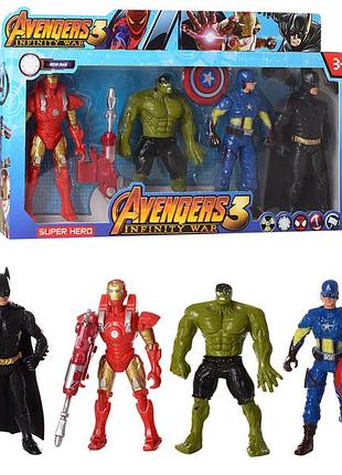 Игровые фигурки супергероев "Marvel", DT007-2 Супергерой - игрушка, которая наполнит досуг мальчика интересными сюжетами и увлекательными играми. В наборе 4 популярных персонажа из вселенной Marvel, высота фигурки 15 см