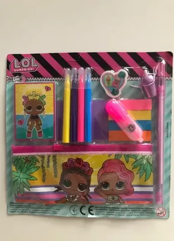 Продаю новый набор L.O.L. Surprise. В набор входят: пенал на молнии из мягкой клиеночной ткани, фломастеры, блокнотик, стикеры-закладки, стирачка-сердечко, маркер и ручка. Отличный яркий подарок для поклонниц LOL.В наличии есть несколько.