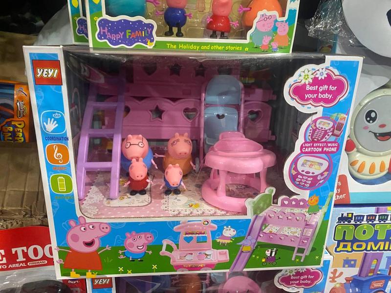 PEPPA PIG YM605A спальная комната "Свинка Пеппа" (коробка) р.31,5*19,3*28см Игровой набор "Свинка Пеппа", 2 вида, в коробке 32,5*21,5*26см, В наборе YM605A: 4 фигурки - вся семья свинок: Пеппа, Джордж, Мама свинка и Папа свин; кровать на два уровня; коляска; столик для кормления. В наборе YM606A: 4 фигурки - вся семья свинок: Пеппа, Джордж, Мама свинка и Папа свин; разноцветная карусель; стол со стульями; лавка мороженника; кровать на два уровня