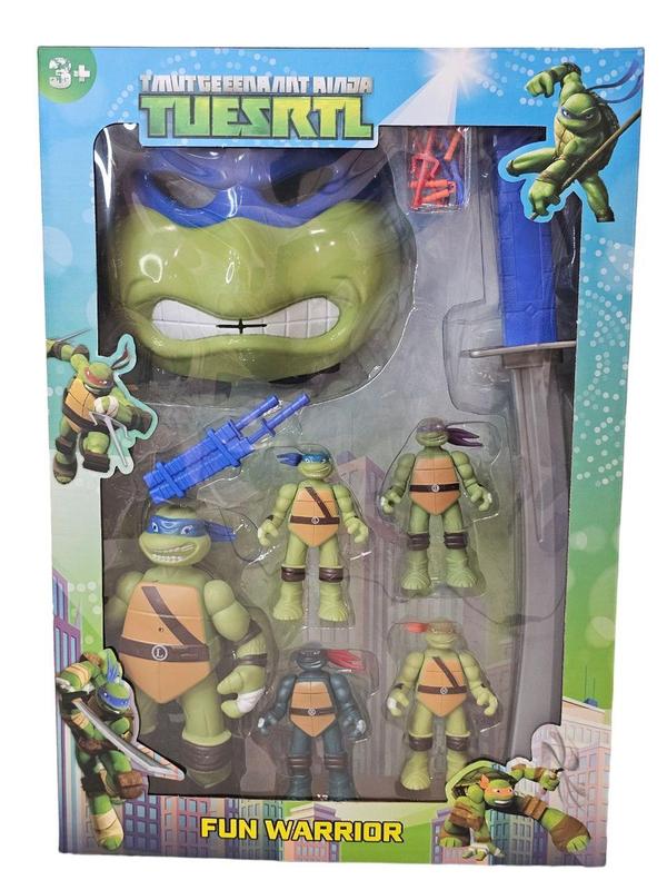 Игрушечная фигурка леонардо с его оружием и другими героями из мультика черепашки ниндзя |...