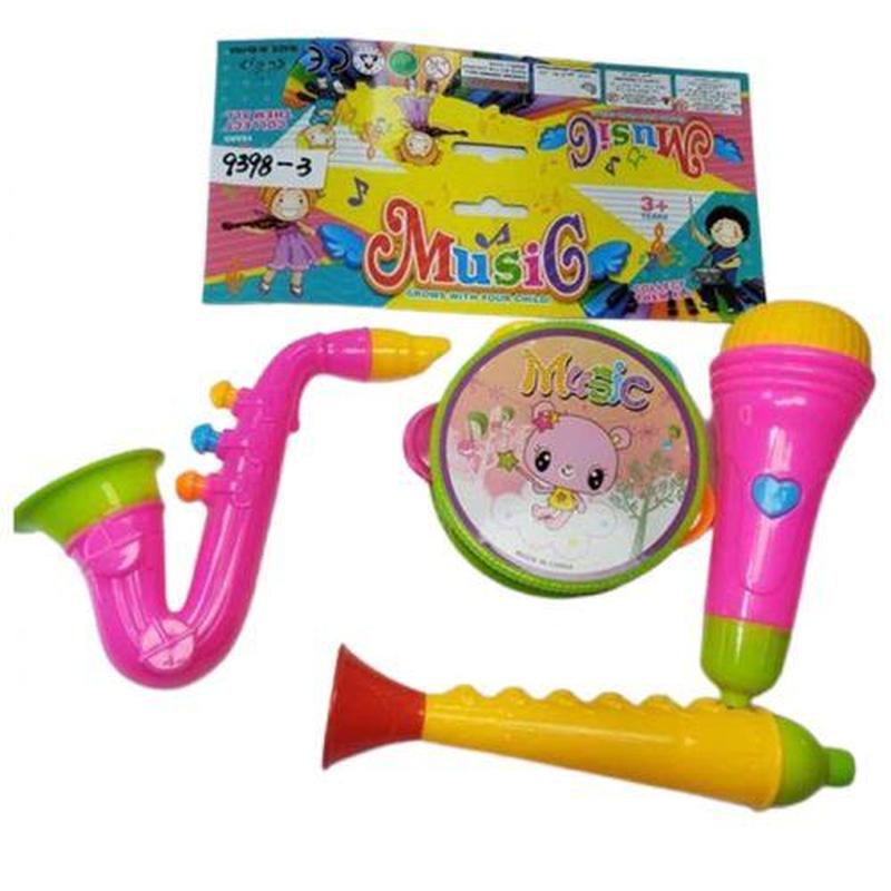 Пластиковый набор музыкальных инструментов для детей. В нем есть: бубен, микрофон, сопилка и саксофон. Микрофон, сопилка и саксофон, если в них подуть, издают характерный звук дудки. Этот набор способствует развитию музыкальных навыков, восприятия звуков и внушает детям интерес к творчеству и музыке. Бренд: MIC Упаковка: Пакет Цвет: Разноцвет Вес в упаковке: 100 г Габариты в упаковке: 21 x 24 x 7 см Cтрана производитель: Китай Материал: Пластик Комплектация: Бубен, микрофон, сопилка и саксофон