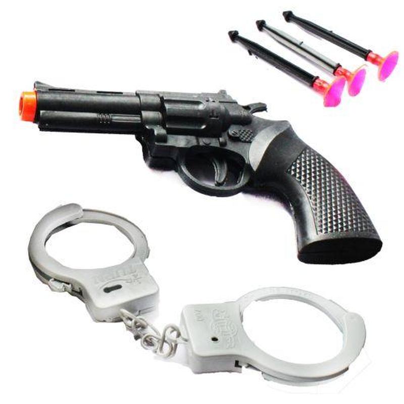 Набор полицейских. В комплект входит пистолет, 3 снаряда с липучками и наручники. Для выстрела нужно вставить снаряд и нажать на курок. Все сделано из высококачественного пластика. Прекрасно подойдет для веселых игр в полицейских с друзьями._