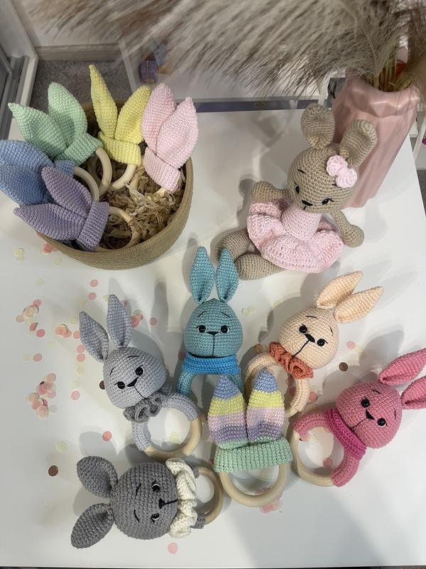 🎁Упаковка в крафтовую коробку с бумагой тешью и конфетти В ПОДАРОК 🎁 🤍ціна вказана за набір Есть три варианта набора: 1. Игрушка «зайчик в платье» Размер с ушками 📏 29см + погремушка зайчик размер с ушками 📏 19см (цвет на выбор ) + ушки прорезыватель размер с ушками 📏13 см (цвет на выбор Цена набора 🏷️ 720грн 2. Игрушка «зайчик в платье» Размер с ушками 📏 29см + погремушка зайчик размер с ушками 📏 19см (цвет на выбор ) Цена набора 🏷️ 570 грн 3. погремушка зайчик размер с ушками 📏 19см (цвет на выбор ) + ушки прорезыватель размер с ушками 📏13 см (цвет на выбор Цена набора 🏷️ 370 грн 🧶 игрушки выполнены из гипоаллергенной пряжи, 👀 глаза на безопасном креплении ☁️ наповнювач - холофайбер 🔔 брязкальце приємно звучить 🪵 кольцо буковое, хорошо отшлифованное ✔️ в наличии 🤍🤎Переходите в наш профиль, там много игрушек, которые вам будут по душе 🤎🤍также, возможные игрушки под заказ Время изготовления 1-3 дня