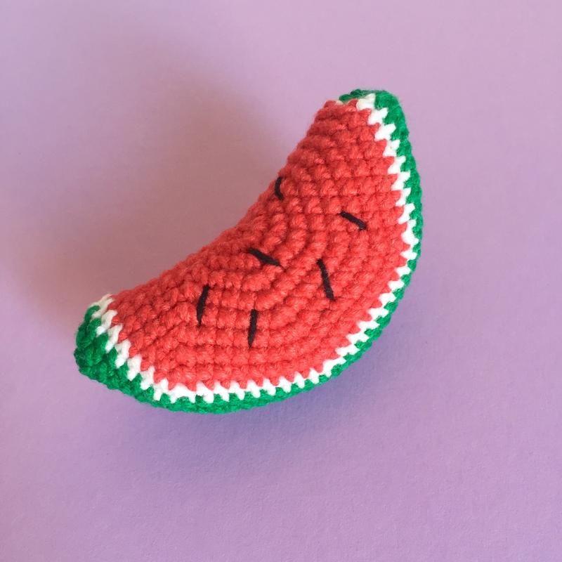 В′язана дитяча іграшка "Долька Кавуна". Зроблена з природних, натуральних, гіпоалергенних матеріалів. Пряжа: бавовна - 55%, акріл - 45%. Наповнювач: холлофайбер. Розміри іграшки: 7,5 - 3,5 см. Пакування: екологічна, переробна упаковка. Ціна вказана за 1 шт! Мінімальна сума замовлення 300 грн (на цю суму можете вибрати любі продукти, які подобаються)!