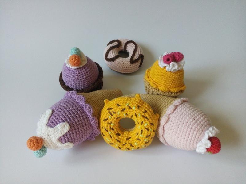 Кто не любит сладости, особенно детишки. Набор связан крючком из ниток Джинс (хлопок 55%, полиакрил 45 %) В набор входит: Мороженое рожок 🍦 длиной 15 см (без ягодок) Пончика диаметром 🍩 9 см Кекс 🧁 высота 8 см Если у вас возникли вопросы, спрашивайте, с радостью отвечу.