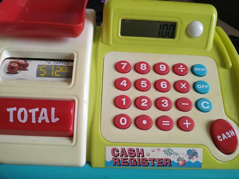 Продам касу з монетками. Калькулятор працює, каса з грошима під час натискання на кнопку відкривається і водночас видає звук, змінюється вигляд товару під час натискання на кнопку під нею. Калькулятор повністю робочий. Стан гарний. Відправлю укр.П. або НП. Дивіться інші свої оголошення й заощаджуєте на доставці багато дитячих речей.