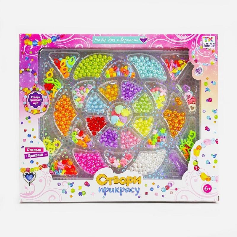 Набір “Створи прикрасу своїми руками” - кращий вибір для творчих особистостей, які обожнюють доповнювати індивідуальний стиль оригінальними прикрасами. Юні майстрині матимуть змогу опанувати різноманітні техніки створення прикрас та втілювати у життя власні дизайнерські задуми. Набір забезпечить багато годин цікавої гри та неймовірні враження від отриманого результату. Це надзвичайний простір для втілення креативних ідей дитини та унікальна можливість розкриття індивідуальних рис характеру маленької рукодільниці в процесі створення прикрас. Особливості: - у наборі представлене широке розмаїття намистин різних кольорів та фактур; - нитка для плетіння та застібки; - намистини виготовлені з якісного пластику; - вікова категорія - 6+; - креативні ігрові набори допомагають розкривати та культивувати творчі здібності маленької особистості, з раннього віку прищеплюючи дитині відчуття смаку, гармонії кольорів та любов до прекрасного. Розмір упаковки: 31 см × 3.5 см × 37 см Відправляємо новою і Укр поштою.