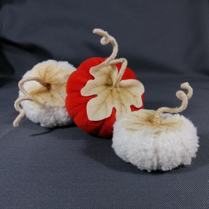 Набор Новогодняя тыква - символ достатка и чудесное Новогоднее украшение под елку. В наборе две снежные тыквы с блеском и одна оранжево красная как пламя. Диаметр тыкв: 8см, 8см, 6.5см Материалы: трикотаж, флис, фетр, хб нить, набивка холофайбер, проволока. Сухая чистка! Не для маленьких детей. Содержит мелкие детали! В НАЛИЧИИ ОДИН НАБОР Смотрите в нашем магазинчике Lilkot другие варианты и наборы тыкв Відправляю Укрпоштою тільки з Безпечною оплатою (через сайт Shafa) При типе оплаты Наложенный платеж к стоимости доставки добавляется 20гр+2% от суммы заказа (за услуги почты)