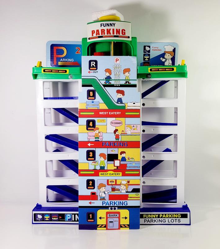 Детям от 3 лет Паркинг В набор входит: - 4 машинки в комплекте - зелёные насаждения - крутой серпантин для спуска машин - 12 парковочных мест - 6 этажей для парковки - лифт для подъема машин - регуляторы направления Материал - полимерный Упаковано в коробку Размер коробки - 39,5*34,5*10,5см Китай