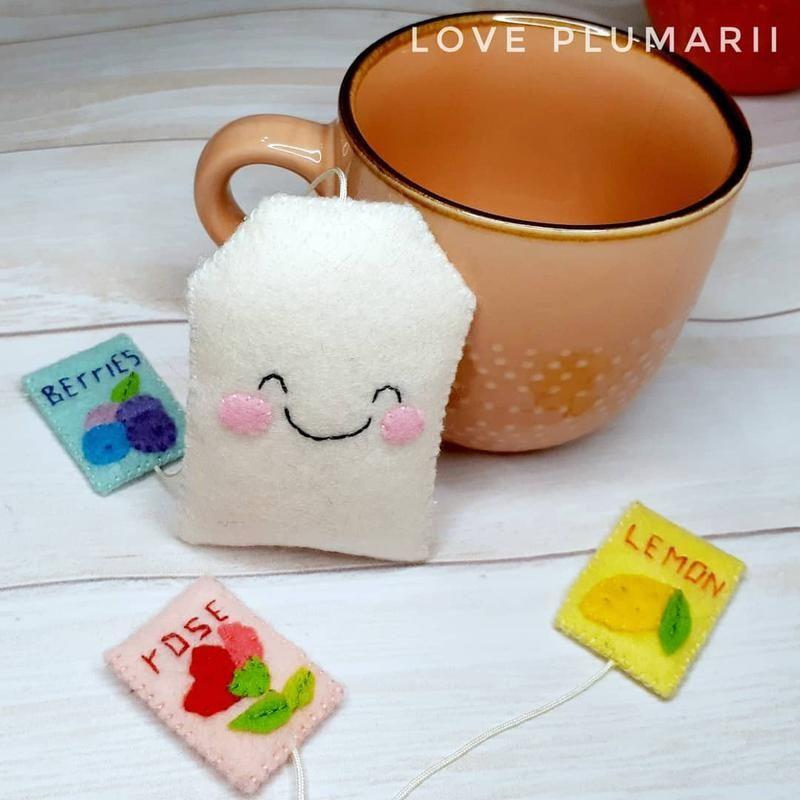 Игрушка в виде пакетика чая. Размер около 6 см. Материалы- фетр и синтепон