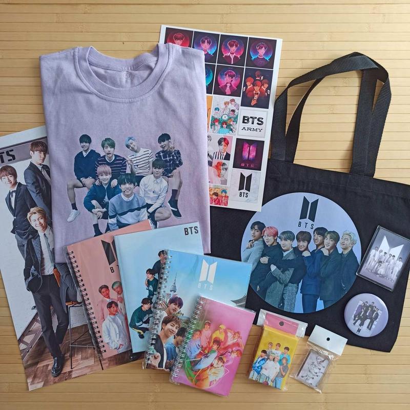 В набір входить: - Постер - Футболка - Скетчбук (на 30 аркушів) - Зошит (на 48 аркушів в клітинку) - Блокнот (на 48 аркушів) - Стікерпак - Сумка шопер - Ломо карти 40 шт - Брелок - Значок 5,6 - Магніт