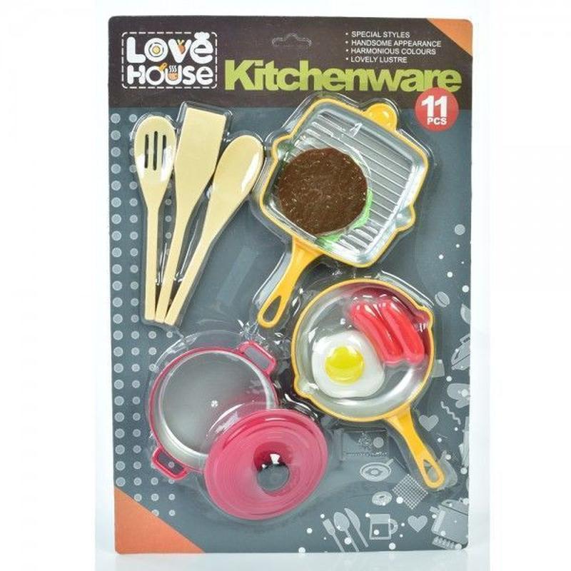 Детский кухонный набор посуды XG2-26 Детский кухонный набор посуды XG2-26 является незаменимым для будущих хозяек, так как с юного возраста будет приучать девочек к тому, что они являются хранительницами домашнего очага, в процессе ролевых игр поможет сформировать любовь к приготовлению пищи, фантазию и аккуратность. Характеристики: - Тип: кухонный набор посуды - Материал: пластик - Возраст: от 3-х лет - Количество предметов: 11 - Количество дизайнов: 1 - Размер упаковки: 29,5х44х5 см - Упаковка: блистер - Цвет: разные цвета Комплектация: - Кастрюля - Сковородка - Продукты - Кухонный набор