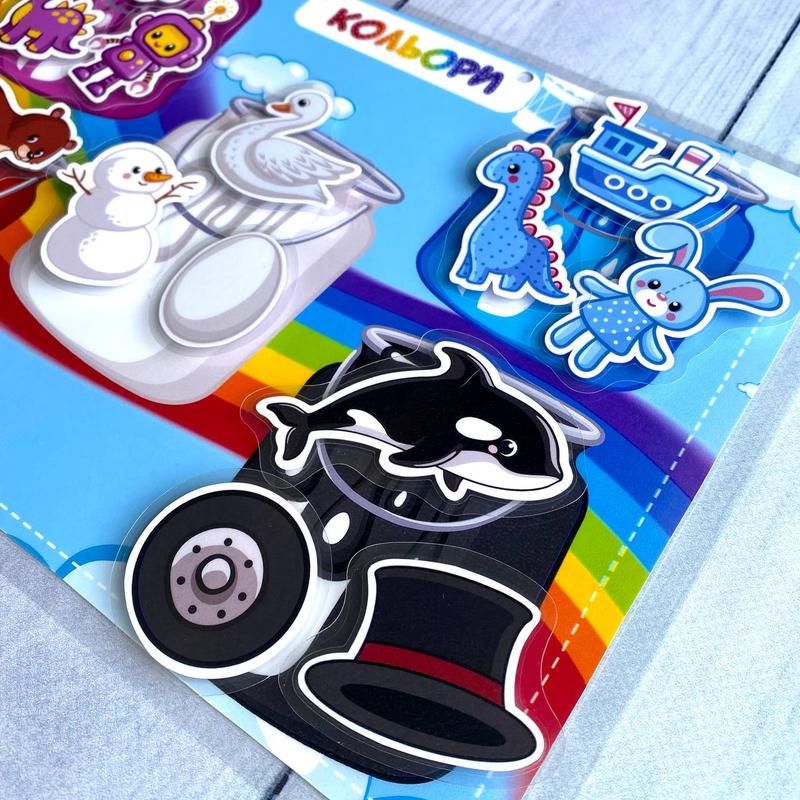цвета, игры на липучках в состав игры входит игровое поле формата А5, 15 деталей. Игра направлена на изучение цветов, но все зависит от Вашей фантазии. Изучайте предметы, играйте с деталями. Поощрите малыша своим присутствием изучать этот мир