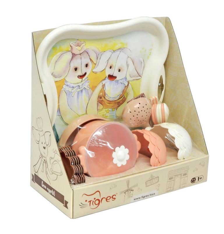 39727 Набор посуды столовый "Завтрак для Эльфов" 38 эл. - поможет нашим маленьким хозяйкам выучить основные правила этикета и сервировки стола. Стильные и удобные тарелки вместе с мисками, вилками, ложками, кастрюлей, сковородкой и подносом - позволят организовать прекрасный завтрак. Іграшкова посудка виготовлена з міцної і безпечної харчової пластмаси. Її можна використовувати в посудомийній машині і мікрохвильовій печі. Набор доступен в цветовой комбинации: бело-кремовый. Состоит из 38 элементов: поднос с термонаклейкой IML - 1 шт. кастрюля - 1 шт. миска - 6 шт. сахарница - 6 шт. сковородка - 1 шт. крышка - 1 шт. ложечка - 6 шт. вилка - 6 шт. нож - 6 шт. шумовка - 1 шт. лопадка кухонная - 1 шт. лопадка кухонная с порезами - 1 шт. половник - 1 шт. Подарочная картонная упаковка.