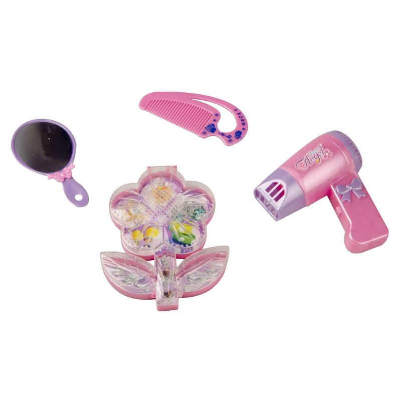 Кожна дівчинка любить різні прикраси та інші яскраві штучки, тому пропонований ігровий набір неодмінно їй сподобається. Він містить фен яскраво-рожевого кольору, дзеркальце зручної форми, гребінець і футляр у вигляді квіточки з прозорою кришкою, де лежать прикраси. Ігровий набір дозволить дитині не тільки грати в різні ігри, але і навчить її догляду за собою і розвине почуття власного стилю. Всі елементи набору виготовлені з високоякісних і безпечних для здоров'я матеріалів. Набори прикрас та аксесуарів дадуть дитині величезний простір для фантазії і дозволять придумати безліч сюжетів для ігор.