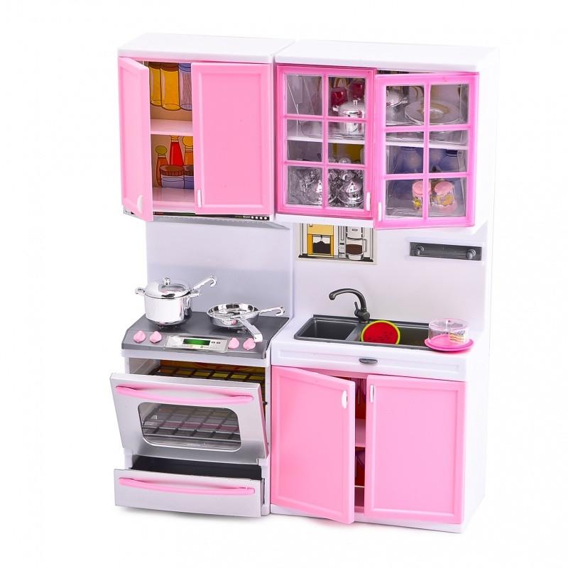 Ігри з ляльками часто побудовані на сюжетах з повсякденних сімейних ситуацій. Прекрасним помічником в таких іграх зможе виступити даний ігровий набір. У нього входять всі необхідні предмети меблів, побутова техніка та додаткові аксесуари для створення ультрасучасної багатофункціональної кухні. Плита з духовою шафою і відділенням для зберігання стане вірною помічницею під час приготування страв для ляльок. Подвійна раковина допоможе відмити весь посуд, а кілька шафок легко розмістять в собі всі дрібні аксесуари і столові прибори. Іграшка оснащена світловими і звуковими ефектами, що зробить гру максимально цікавою і реалістічною. Меблі для ляльок - прекрасні декорації для захоплюючих і цікавих ігор. Тип живлення: AAA-2шт