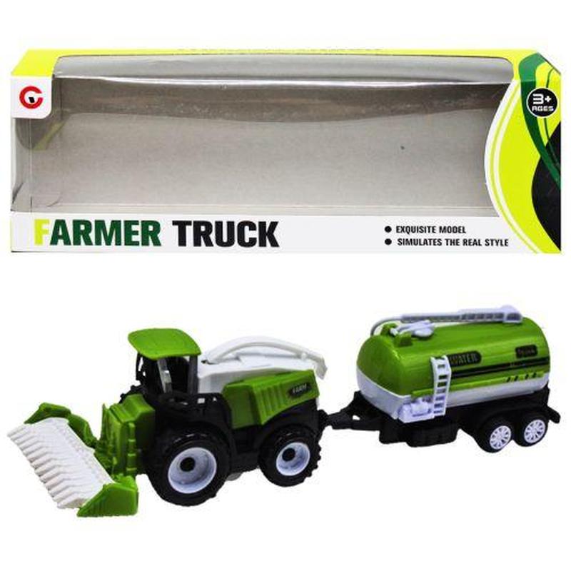 Набор сельскохозяйственной техники. В комплект входит комбайн с цистерной. Есть некоторые движущиеся детали. Модель очень похожа на свой настоящий аналог. Изготовлен из качественного и безопасного пластика. Прекрасно подойдет для веселых игр и понравится ребенку. Возраст: 3 года Упаковка: Коробка Цвет: Зеленый Вес в упаковке: 130 г Габариты в упаковке: 26 x 6.5 x 9 см Cтрана производитель: Китай Материал: Пластик Комплектация: Комбайн с цистерной