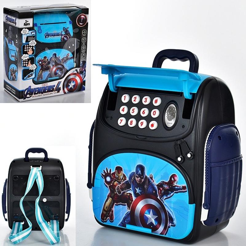 Копилка/ сейф "Супергерои" WF-3008AG рюкзак-сейф, кодовый замок, затяжку, звук, свет, на батар., в коробке 27*23*13см