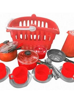 Набір дитячого посуду "Iriska 8" (арт. 134), має у своєму складі 27 предметів кухонного приладдя, зокрема сковорідку, кухлі, каструлі та навіть шумівки. Збираючи їх у кошик після гри та перераховуючи, дитина швидко опанує арифметику, навчитися точно і швидко рахувати. Але крім цього, дівчинка навчитися акуратності, ощадливості, мистецтву домоведення. Набір розрахований на дівчаток дошкільного віку, його можна використовувати для гри, як у пісочниці, так і в квартирі. Набір виготовлений з екологічно чистих матеріалів, що відповідають світовим вимогам щодо якості. Виробник може змінювати колірну гамму товару без попередження. Наявність кольорів уточнюйте у менеджера компанії.