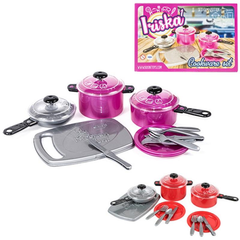Набор посуды Iriska 1 - прекрасный набор для маленьких помощниц для маленьких помощниц. В набор входит: сковородка, средняя кастрюля с одной ручкой, большая кастрюля с двумя ручками, 2 вилки, 2 ножа, 2 ложки. Купить Набор посуды Iriska 1 можно в нашем интернет-магазине детских игрушек. Для получения более детальной информации обратитесь к нашим менеджерам. Производитель может менять цветовую гамму товара без предупреждения. Наличие цветов уточняйте у менеджера компании.