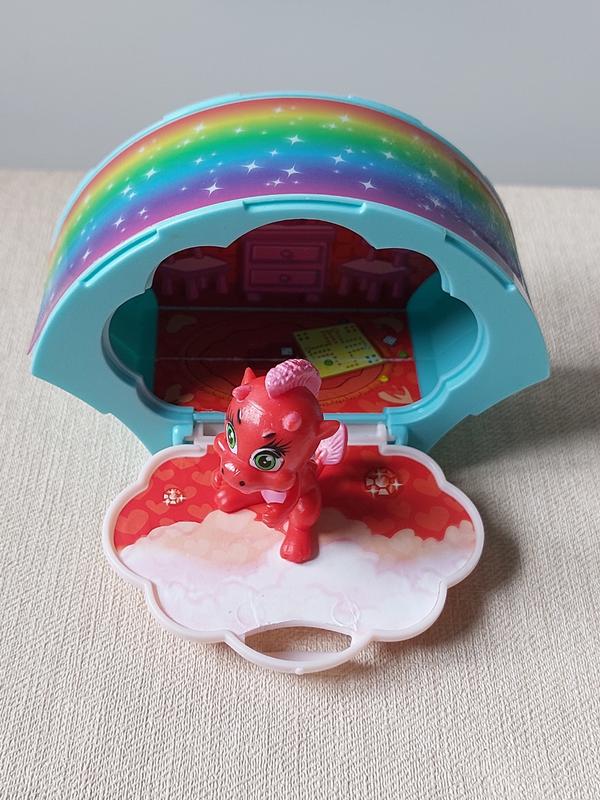 Игровой набор Simba Sapphiras Rainbow Friends, с дракончиком и домом-радугой Цветная фигурка дракончика "Сафирас". Характеристика: большие выразительные глаза с длинными ресницами; цветные крылья; у дракончика собственный радужный дом; дверцы открываются; дома соединяются между собой с другими дракончиками из этой серии,образуя большую радугу;